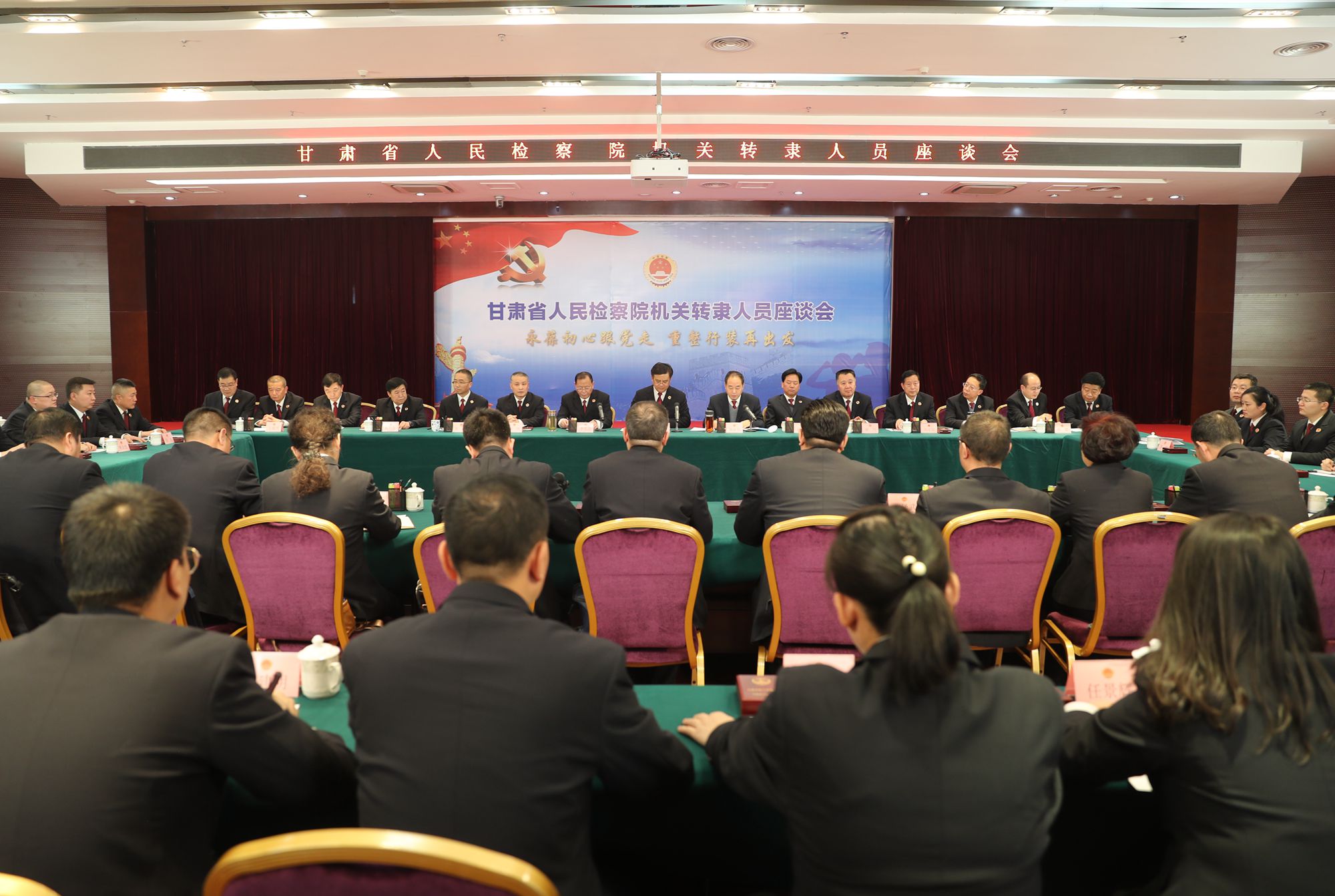 会上,省人民检察院党组副书记、副检察长李东亮同志宣读了《甘肃省深化监察体制改革试点工作小组关于省检察院机关及分院84名干部整体转隶的通知》。高连城、陈中伟、张全民、赵嘉和袁保伟分别代表转隶人员和机关部门发言。省检察院党组成员、检委会专职委员、副厅级以上干部,机关45名转隶干警及各部门主要负责人参加了座谈会。