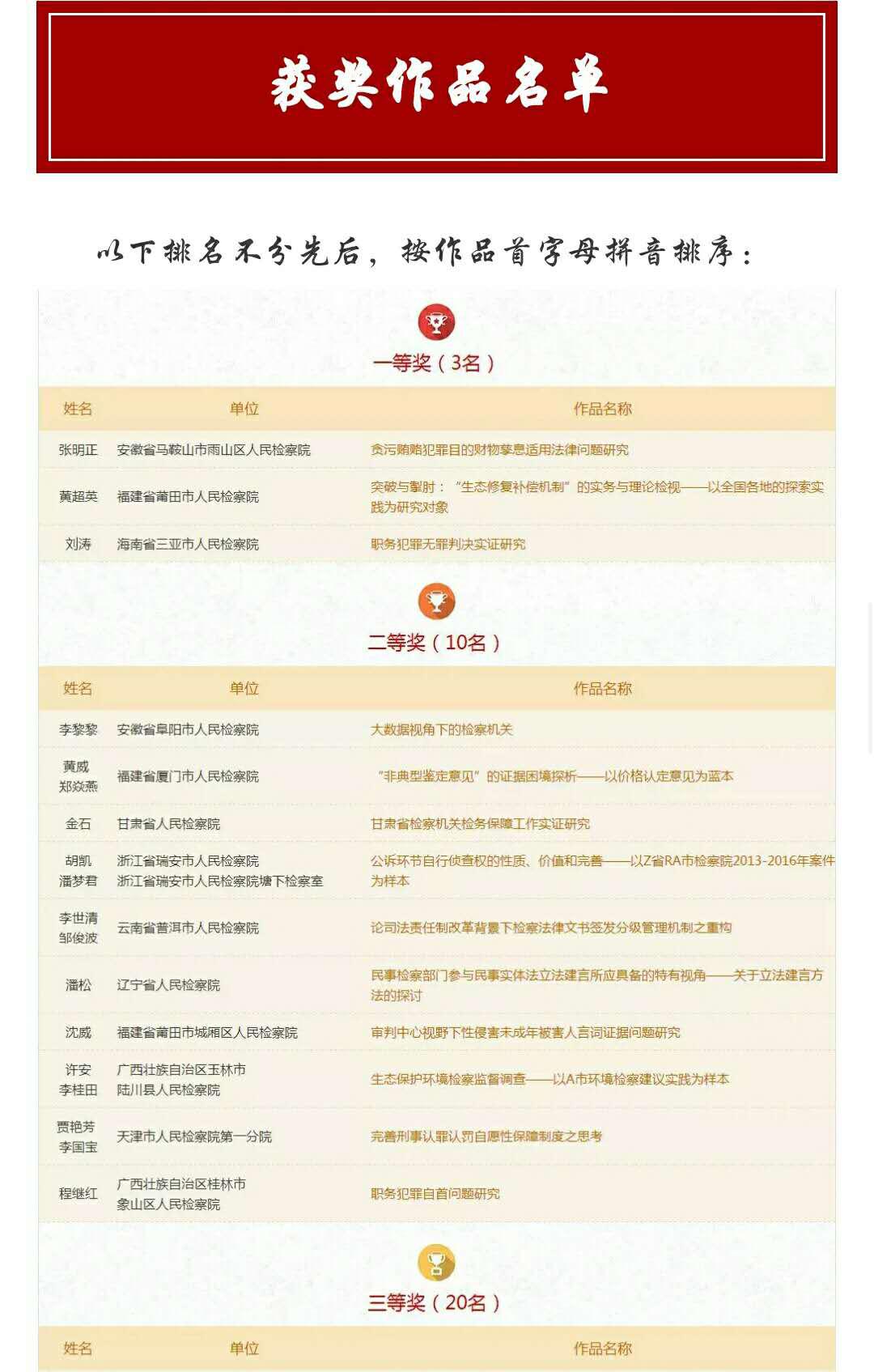 据悉,此次活动是经高检院领导批准,由高检院法律政策研究室与同方知网(北京)技术有限公司联合举办,以“加强法律理解与适用,塑造专业化检察官”为主题的有奖征文活动。据统计,在全国各级检察机关的积极参与下,共提交参赛论文914篇,为确保评审水平和质量,组委会对全部投稿论文均利用中国知网检测软件进行了原创性检测;邀请有关专家组成评审组,根据原创优先,对检察工作具有指导意义优先,论点新颖优先的原则,通过匿名评审、一稿三评、同题择优等环节,对参赛论文进行了认真评审。最终,评选出一等奖论文3篇,二等奖论文10篇,三等奖论文20篇,优秀奖论文50篇。