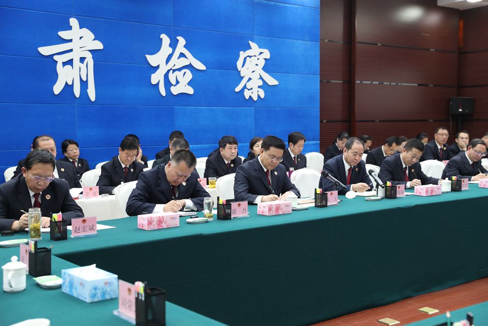 马世忠充分肯定了今年以来全省检察工作,强调要增强思想政治工作的时代性和感召力,真正把全体检察干警的思想统一到习近平新时代中国特色社会主义思想上,统一到中央的决策部署上,切实增强“四个意识”,坚定“四个自信”。要全力支持配合监察体制改革,深入研究新形势下检察监督工作的着力点和增长点,充分发挥检察监督职能,在法治甘肃建设中发挥应有的作用。要找准检察工作与经济社会发展的结合点、着力点,谋划落实好防范风险、脱贫攻坚、污染防治、产权保护、扫黑除恶、民生检察等工作。要持续推进司法体制配套改革,有针对性地完善政策、解决问题、狠抓落实,进一步提升改革质效。
