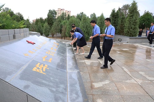高台烈士陵园是高台县为纪念牺牲的烈士而建立的墓园,也是国内最具权威性的红西路军历史纪念、展示、保护和研究中心。纪念1937年初高台攻防战中3000多名英勇牺牲的红西路军革命烈士。活动中,党员们怀着崇敬的心情向烈士墓碑敬献了花篮,并向革命先烈默哀致敬。面向鲜红的党旗肃然站立,向革命烈士默哀鞠躬,全体党员庄严地举起右手,重温入党誓词,用坚定有力的声音,再次发出铮铮誓言,更加坚定“不忘初心,牢记使命”的理想信念。