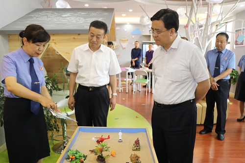 朱玉一行首先察看了12309检察服务中心,就控告申诉情况、群众来信七日回复情况等进行询问了解。在“彩虹伞”未成年人心理疏导中心,西固区院检察长孟春介绍了区院落实未成年人双向保护制度、强化法律监督工作情况。随后朱玉检察长还视察了扫黑除恶办公室和机关党建基地。