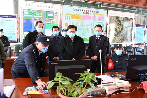 朱玉一行首先来到定西监狱和安定区看守所,通过指挥中心视频监控系统查看了监管场所疫情防控工作开展情况,并听取了监管场所负责人关于值班备勤及各项安全监控措施相关情况的介绍。朱玉强调,在疫情防控的特殊时期,监管机构一定要更加严格的遵守和执行相关制度,严格按照操作规程办理相关事项,疫情防控措施要落实到位。刑事执行检察部门和派驻检察室要监督、配合监管场所采取措施、开展工作,切实维护在押人员的合法权益,确保监管场所安全稳定。