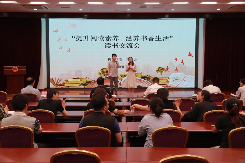 “与书相伴,与梦想同行”。为了倡导良好的读书风尚,提升省院青年干警思想境界和文化素养,培养爱读书、会读书、读好书的良好习惯,6月19日下午,机关党委、青委会成功举办了以“提升阅读素养 涵养书香生活”为主题的读书交流分享会,这也是省院迎“七一”党建主题系列活动之一。省检察院党组成员、副检察长张学军,二级高级检察官樊伟、牛进福,特级检察官助理王丹晖、政治部有关负责人和机关各部门青年干警代表一起在现场观看了交流分享会。