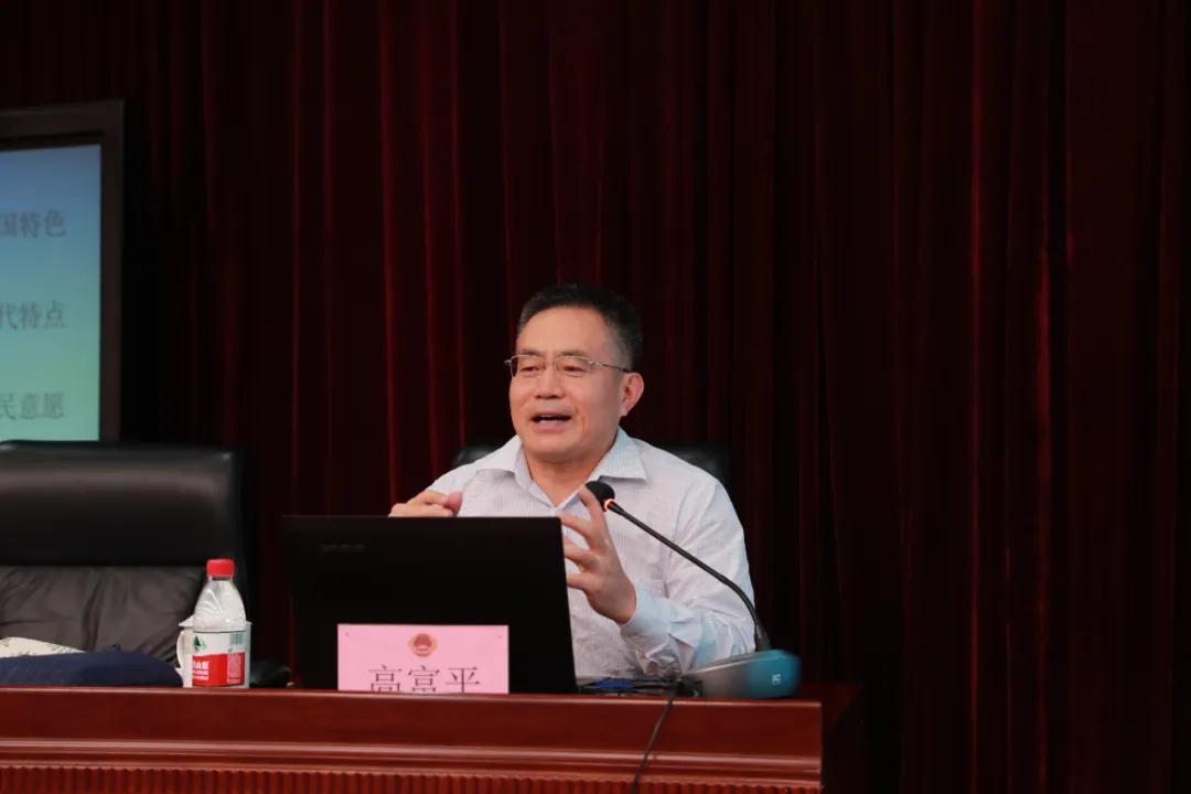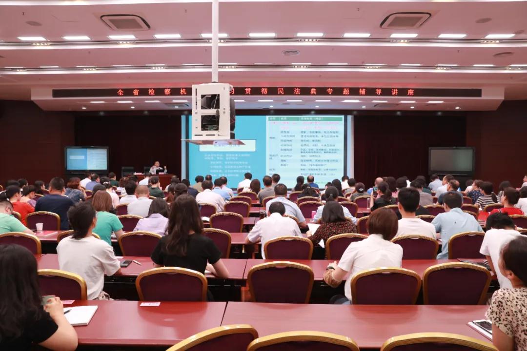 又请来了华东政法大学教授、民法研究中心主任、财产法研究院院长高富平以民法典物权编和人格权编为主要内容为全省检察干警作第二次专题辅导。省检察院党组书记、检察长朱玉,在家的院领导及机关全体人员在主会场聆听讲座,市县两级检察院全体干警通过视频连线同步听讲。讲座由省检察院党组成员、副检察长张学军主持。