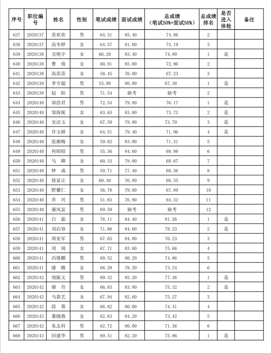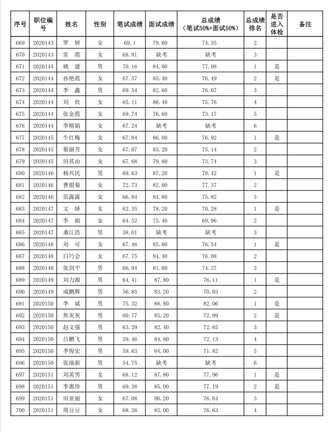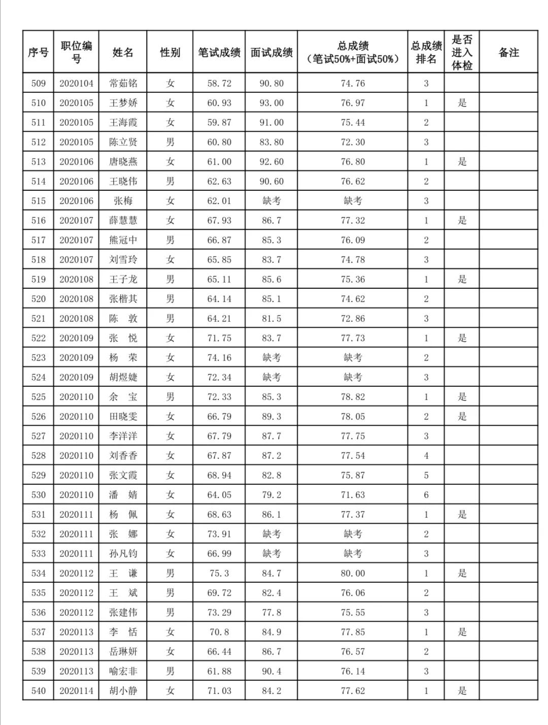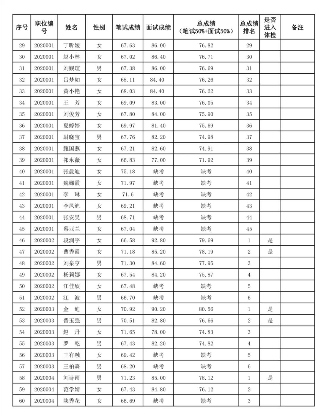 2020年甘肃省检察机关公开招聘聘用制书记员已完成笔试、资格复审、面试等环节,按照《招聘公告》规定,应试人员的总成绩计算公式为:总成绩=笔试成绩×50%+面试成绩×50%( 最终成绩保留小数点后两位),根据总成绩由高到低的次序,等额确定进入体检环节人选。