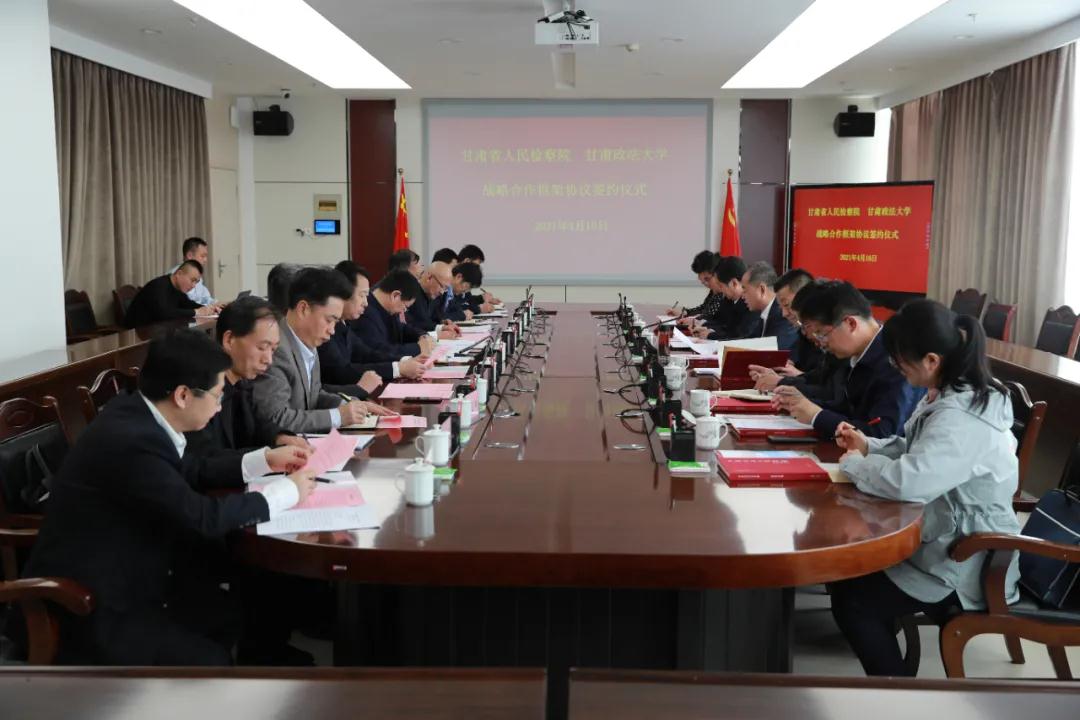 与甘肃政法大学战略合作框架协议签约仪式在甘肃政法大学举行。签约仪式由甘肃政法大学党委书记马建东主持,省检察院党组成员、副检察长张学军与甘肃政法大学党委委员、副校长焦盛荣代表合作双方共同签署了《1024核工厂