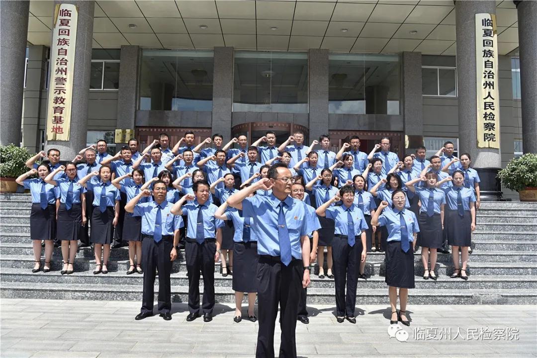 6月29日,临夏州检察院开展“重温入党誓词、重忆入党初心”主题活动。全体党员干警面对鲜红的党旗,举起右手,重温了入党誓词。大家纷纷表示,今后要在各自的工作岗位上,牢牢把握时代脉搏,不断立根铸魂、深耕主业、固本培元,用忠诚体现担当,以行动诠释信仰,用实际行动助力党的事业、检察事业稳步向前发展。