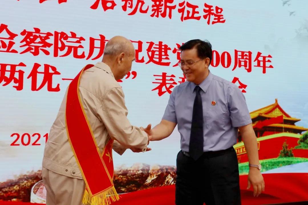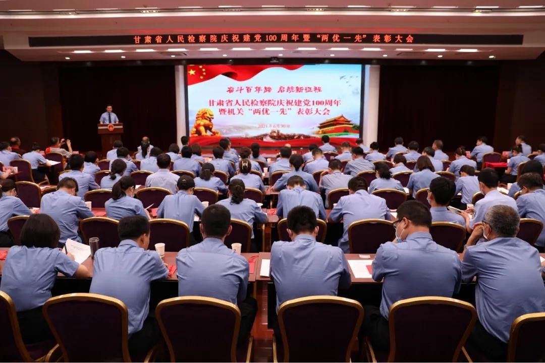召开庆祝中国共产党成立100周年暨“两优一先”表彰大会,喜迎党的百年华诞。省检察院党组书记、检察长朱玉出席会议并讲话,党组副书记、副检察长李保岗主持会议,省检察院党组成员、二级巡视员、二级高级检察官、特级检察官助理、各党支部书记、机关全体党员干部及三个分院党员代表参加会议。