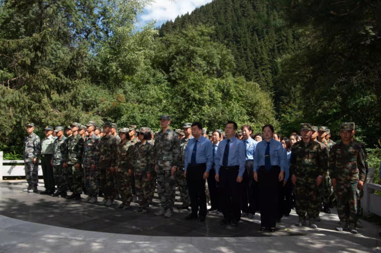 、兰州市检察院、榆中县检察院公益诉讼检察干警及西部战区第二检察院、兰州军事检察院、驻兰部队官兵共计150余人,在兴隆山革命烈士陵园开展主题党日活动,向革命烈士敬献花篮并重温入党誓词。随后,全体人员协同榆中县退役军人事务局、陵园工作人员,对烈士墓碑进行描红粉刷,清理杂草树枝,对损坏的纪念设施进行了修缮。