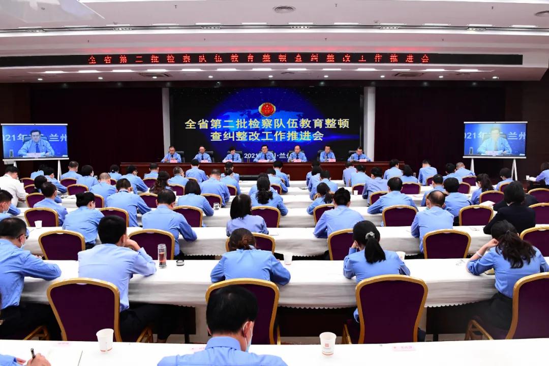 召开全省第二批检察队伍教育整顿查纠整改工作推进会。省检察院党组书记、检察长朱玉出席会议并讲话,党组副书记、副检察长李保岗主持会议,党组成员、省纪委监委派驻省检察院纪检监察组组长董兆生传达了中央第十五督导组与省检察院教育整顿办公室座谈会精神,通报了第二批教育整顿第一轮自查填报有关情况。省检察院机关和兰铁、林区、矿区三个分院及所辖基层检察院全体干警参加会议。