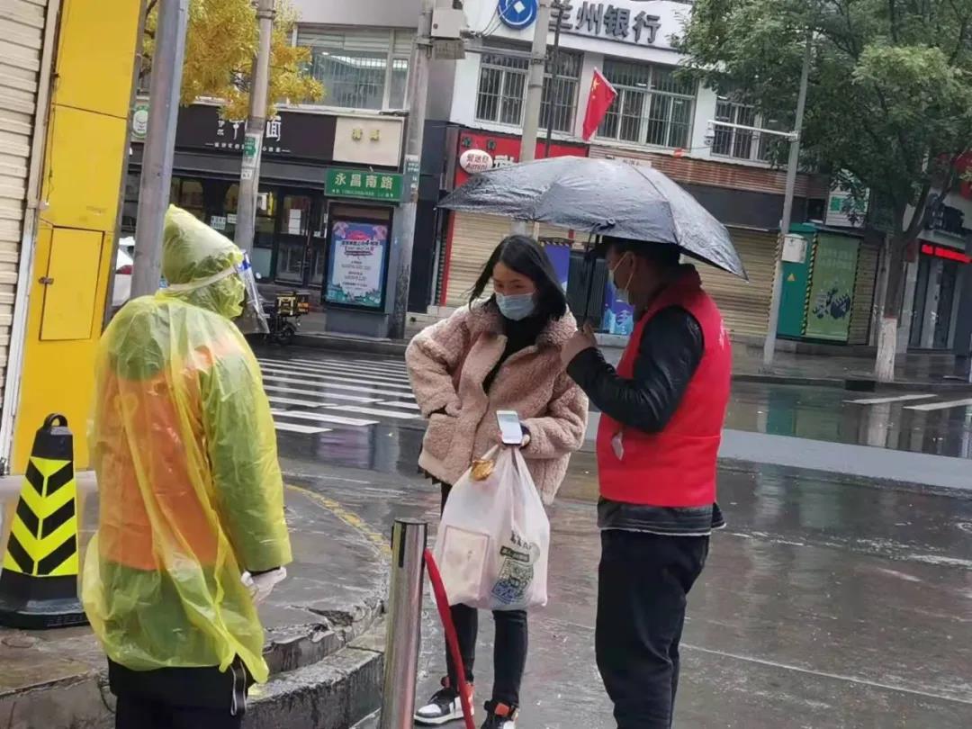 “老奶奶,我们是疫情防控志愿者,雨再大,我们也不会退的。”11月1日,在降温雨雪天气中,1024核工厂