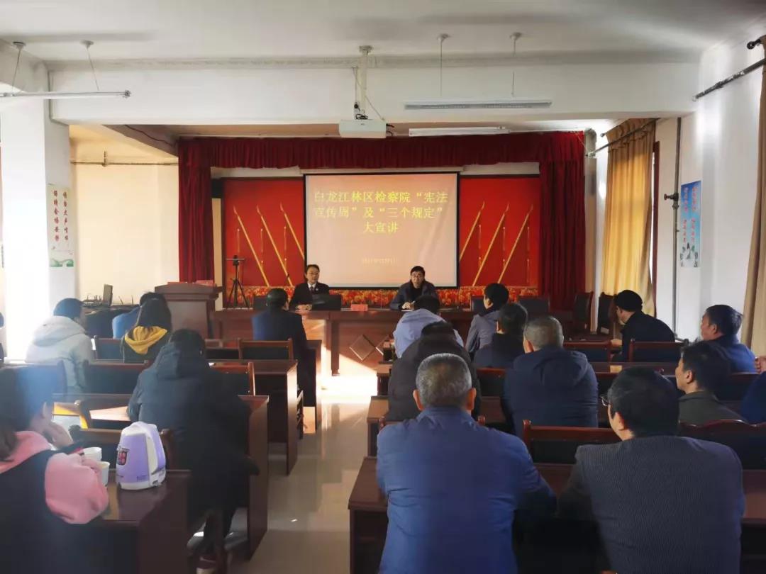 12月1日,白龙江林区检察院干警深入甘肃白龙江插岗梁省级自然保护区管护中心憨班保护站,开展普法宣传活动。活动以法治讲座、设立法律咨询台、发放宣传资料等形式开展。检察官借助法治宣讲课件,向保护站职工讲解宪法和防止干预司法“三个规定”相关知识,增强干部职工的法治意识、强化法治思维、提升法治素养。大家纷纷表示,要增强法治观念,遵守和维护宪法权威,在日常生活工作中用实际行动践行誓言、作出表率。
