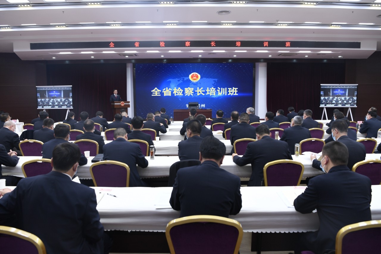 为进一步加强政治和业务学习,不断提升能力水平,推动换届后检察工作持续、高质量发展,为服务保障全省经济社会高质量发展作出新贡献,12月22日,为期3天的甘肃省检察长培训班在兰州开班,来自全省三级检察院的113名检察长共聚一堂集中培训,深入学习贯彻党的十九届六中全会精神和习近平法治思想,讲政治、强业务、促发展,推动甘肃检察工作高质量发展。该省检察院党组书记、检察长朱玉出席开班仪式,并以《深入学习贯彻党的十九届六中全会精神和习近平法治思想,以高质量法律监督服务保障全省高质量发展》为题讲授第一课。