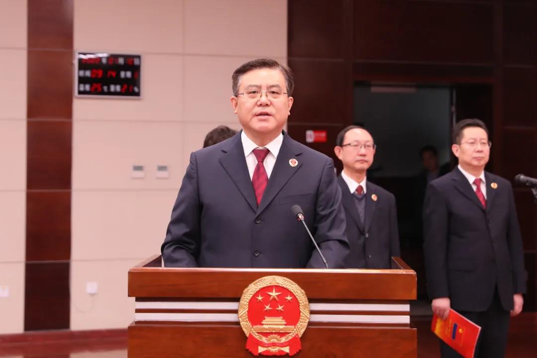 “我是人民检察院司法警察,我宣誓……”在全体奏唱《中华人民共和国国歌》、重温习近平总书记训词后,司法警察面向中国人民警察警旗庄严宣誓,朱玉现场监誓。