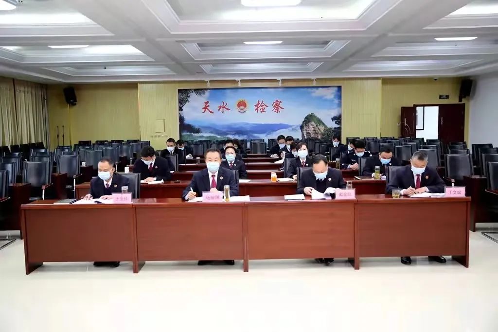 1月25日,天水市检察院通过电视电话视频会议参加全省检察长会议。会后,市检察院党组书记、检察长杨耀明就认真学习贯彻会议精神及朱玉检察长讲话提出具体要求。全市检察机关要切实把思想和行动统一到会议精神上来,认真贯彻落实全市“年初亮目标”评议大会精神,围绕“怎样争先创优,如何实现全省目标”,补齐2021年工作短板,进一步完善细化2022年工作要点,提出具体务实措施;要聚焦市第八次党代会“建强副中心,走出新路子”发展方向,按照天水检察“争三保六”总体目标,通过“班子务实创新、队伍团结奋进、工作争创一流”的良好新风貌,全力实现2022年总体目标任务,以优异成绩迎接党的二十大和省第十四次党代会胜利召开。