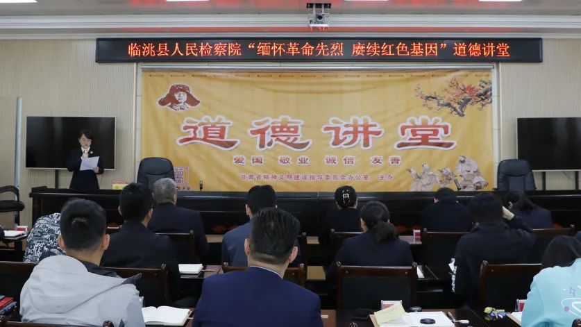 3月28日,临洮县检察院举办主题为“缅怀革命先烈,赓续红色基因”的道德讲堂活动,忆革命峥嵘岁月,缅怀革命先烈不怕牺牲、英勇斗争、前赴后继、浴血奋战的精神血脉,为干事创业汲取强大精神力量和丰润道德滋养。活动分“唱歌曲、看短片、诵经典、讲故事、做点评”五个环节,通过干警齐唱《保卫黄河》、观看文献纪录片《解放之战·兰州血战》、诗歌朗诵、分享红色故事等方式,教育激励干警增强忧患意识,做到常怀远虑,缅怀先烈,发扬斗争精神,永葆艰苦奋斗政治本色。