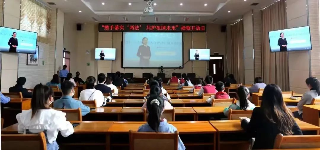 在“六一”国际儿童节来临之际,徽县检察院开展以“携手落实‘两法’ 共护祖国未来”为主题的检察开放日活动,邀请徽县职业中学师生代表参观案件管理办公室和12309检察服务中心,了解检察机关的职能,观看涉及“两法”及反电诈等内容的宣传展板。检察干警还为同学们讲授了未成年人安全教育法治课。