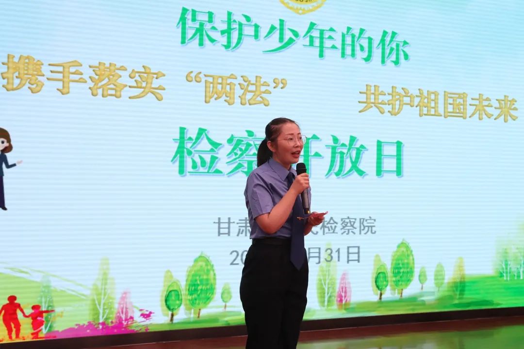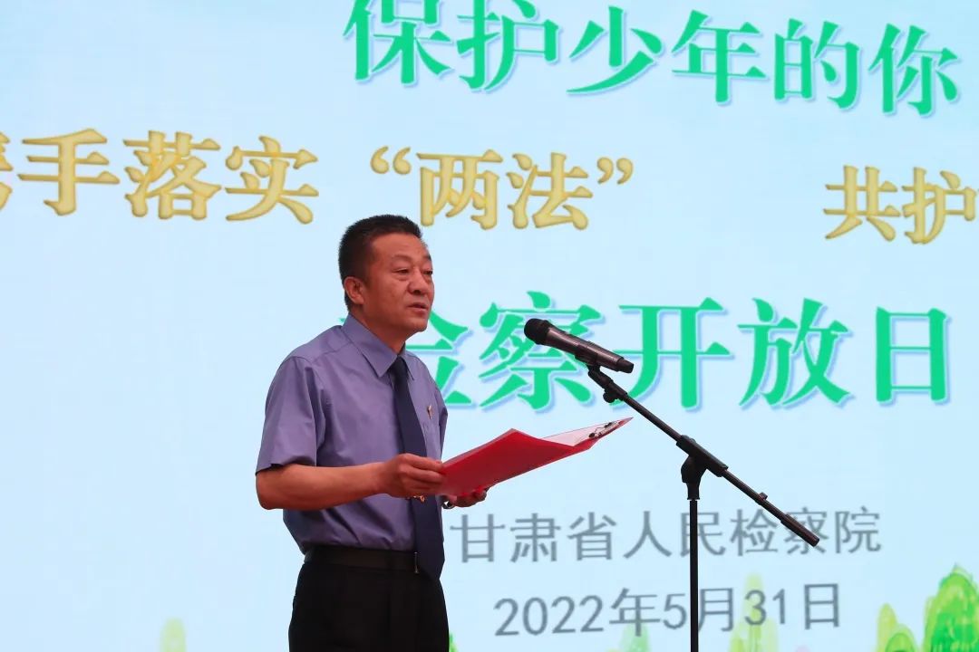 举办了“携手落实‘两法’ 共护祖国未来”为主题的检察开放日活动。全国、省人大代表和全国政协委员、省检察院人民监督员和省教育厅、省民政厅、团省委、省妇联、省关工委等单位相关部门负责人及兰州华侨实验学校学生、家长、教师代表近50人应邀参加了活动。省委政法委、省检察院新媒体平台及省广电总台视听甘肃客户端对活动进行了直播。