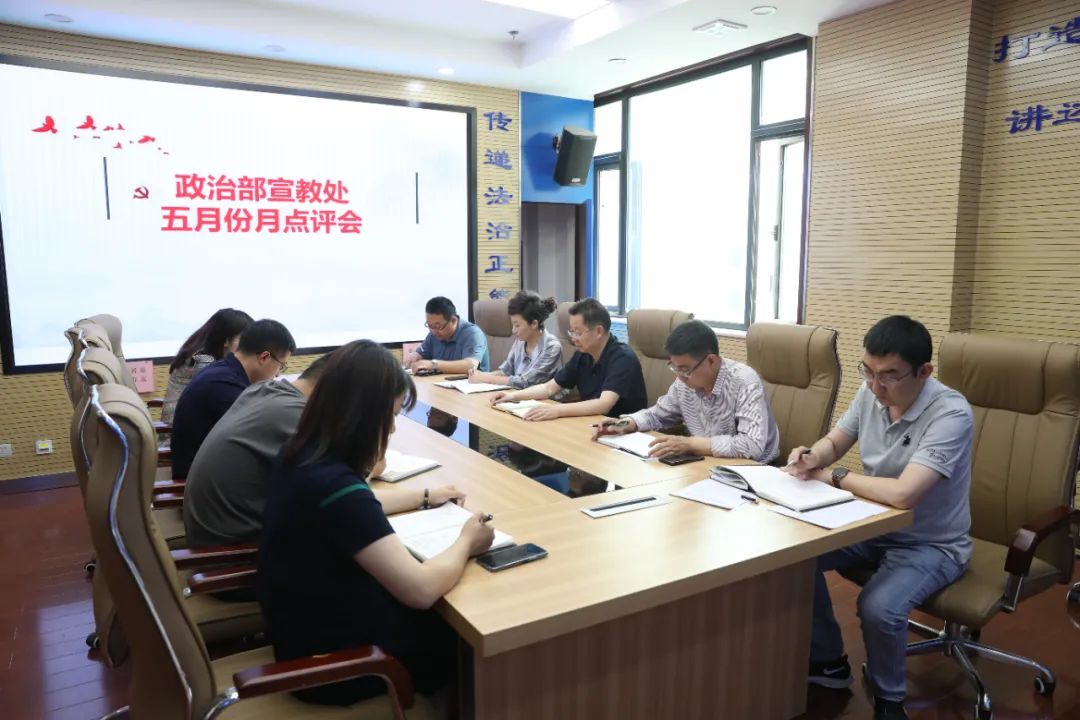 6月2日,政治部宣教处召开月点评会议,深入学习省第十四次党代会精神,自评、点评5月份新闻宣传、教育培训、表彰奖励、检察文化、院交办重大事项办理等工作进展、成效,查漏补缺,统筹安排下一步工作。省检察院党组成员、政治部主任李建功,政治部副主任王瑞成参加会议。李建功要求,要加强政治理论和检察业务学习,统筹兼顾,团结协作,分工不分家,共同努力,做好宣教工作,同时,持续加强作风建设,严格要求自己,共同维护好检察院的形象。王瑞成对落实好相关措施提出要求。