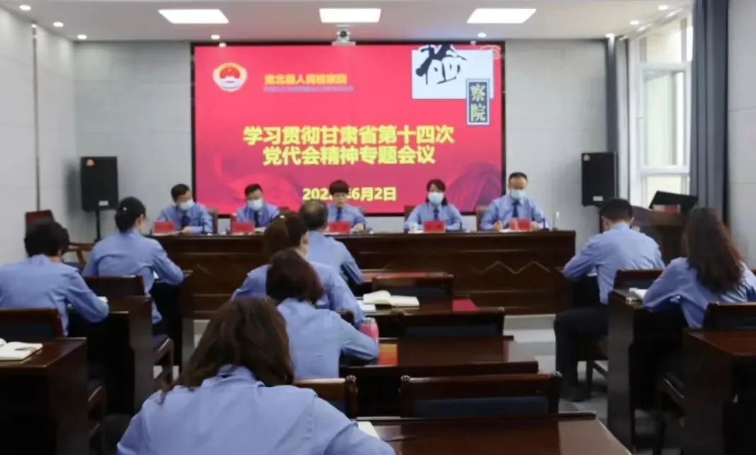 6月2日,酒泉市肃州区检察院召开党组(扩大)会议,专题传达学习省第十四次党代会精神。会议指出,全院要丰富学习形式,确保学习效果。要积极宣传,营造浓厚氛围。要紧密结合实际,有力贯彻落实,切实把党代会精神和省、市、区委决策部署不折不扣落实到肃州检察工作中。要加强队伍建设,提升履职能力,以检察工作高质量发展服务保障全区经济社会高质量发展,为加快建设经济繁荣、社会文明、环境优美、人民幸福的酒泉首善之区和现代化区域中心城市贡献检察力量。