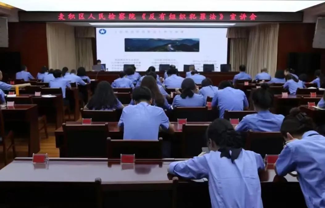 6月13日,天水市麦积区检察院干警为全院干警进行了《反有组织犯罪法》专题宣讲,从《反有组织犯罪法》的制定背景、出台意义、六大亮点、重点内容四个方面做了宣讲。全体干警表示,要进一步强化了法治意识、人权意识、证据意识、程序意识和自觉接受监督意识,更好地运用法治思维和法治方式打击黑恶势力,确保扫黑除恶常态化工作向前推进。