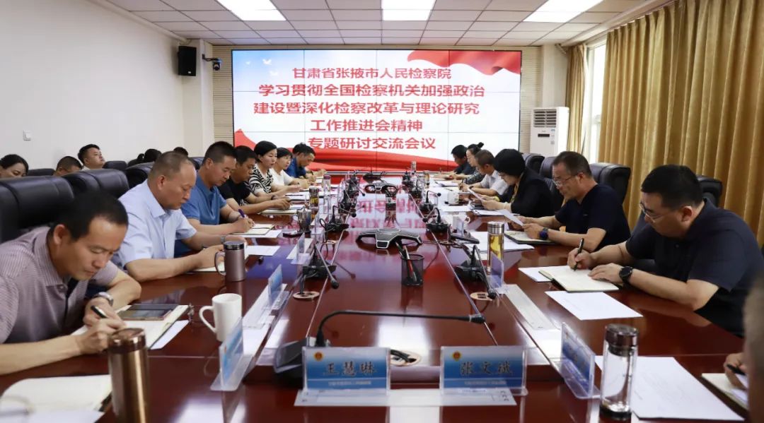 7月15日,张掖市检察院召开会议,专题学习贯彻全国检察机关加强政治建设暨深化检察改革与理论研究工作推进会精神,干警代表围绕推进会精神,结合工作实际,展开交流研讨。会议指出,此次推进会为做好政治建设、检察改革和理论研究工作明确了目标、给出了举措。全市检察机关要坚持实干导向,从讲政治、强改革、重理论三个方面把会议精神融入到检察具体工作中,以实际行动推动张掖检察工作高质量发展。