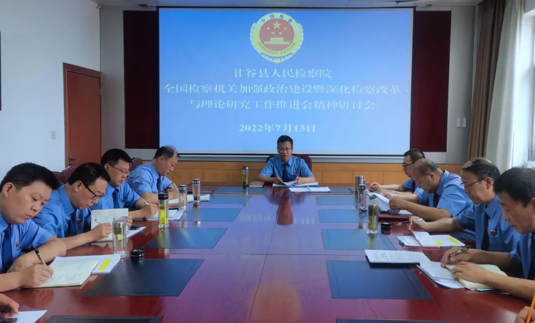 7月13日,甘谷县检察院召开专题会议,传达学习全国检察机关加强政治建设暨深化检察改革与理论研究工作推进会精神,参会人员畅谈体会感悟,结合实际提出贯彻落实的措施办法。会议要求,全院干警要进一步聚焦推进会部署的重点任务,认真对照分析研判、细化完善工作举措、锚定目标真抓实干,切实把会议精神贯彻落实到具体工作中,以检察工作高质量发展助推甘谷经济社会高质量发展。