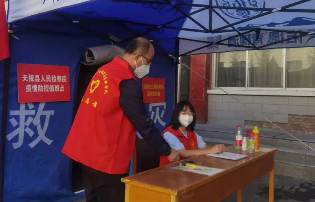 天祝县检察院迅速组成干警志愿服务队奔赴疫情防控第一线。在社区值守点及交通卡点,该院干警对包抓的住户进行详细摸排,精准掌握家庭成员基本情况、近期有无中高风险地区旅居史、有无核酸检测等信息,同时组织干警积极参与流调溯源、物资发放、出入登记、防疫宣传等疫情防控工作。