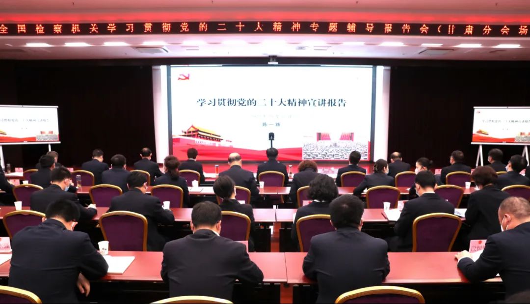 10月31日下午,甘肃省检察机关组织三级院检察干警以电视电话会议形式参加最高检党组理论学习中心组(扩大)学习暨学习贯彻党的二十大精神专题辅导报告会,深入学习党的二十大精神。中央政法委秘书长,国家安全部部长、党委书记陈一新作辅导报告,最高人民检察院党组书记、检察长张军主持报告会。