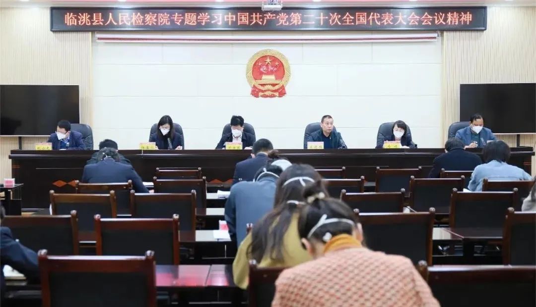 近日,临洮县检察院召开会议,专题学习党的二十大精神。会议要求,要进一步提高政治站位,在原原本本、原汁原味研读党的二十大报告的基础上,突出重点、抓住关键,推动全体干警牢记和践行好“三个务必”,坚决捍卫“两个确立”,在政治立场、政治方向、政治原则、政治道路上同以习近平同志为核心的党中央保持高度一致,把党的二十大精神转化为干在实处、走在前列、勇立潮头的强大动力,以更饱满的热情和更高的检察素养投入到工作中,推动临洮检察工作高质量发展。