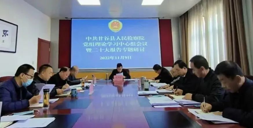 近日,甘谷县检察院党组书记、检察长邵新建主持召开党组理论学习中心组会议,学习贯彻党的二十大精神。会议要求,要持续强化责任意识,知责于心、担责于身、履责于行,全力优化“四大检察”“十大业务”,持续服务中心大局。要坚持“两聚焦一结合”工作思路,主动对标县委和上级检察院决策部署,立足检察职能,研判细化措施,突出着力重点,找准检察服务甘谷经济社会发展大局的切入点和着力点,为县域高质量发展贡献检察力量。