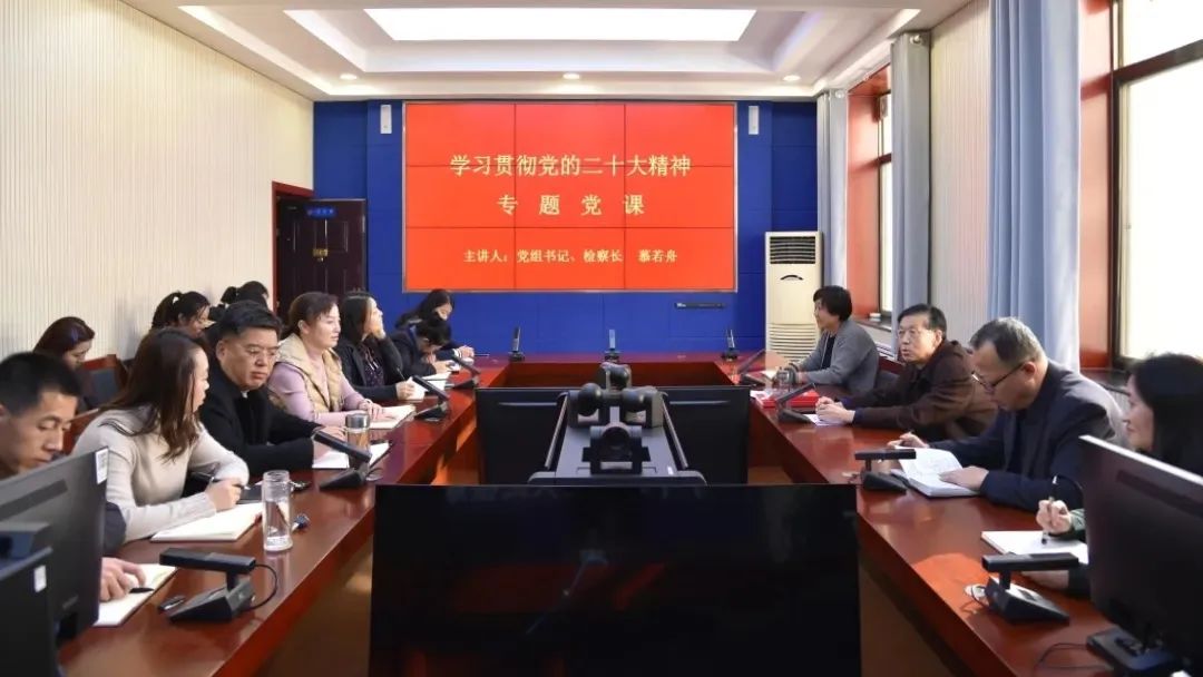 夏河县检察院党组书记、检察长李剑华为全体干警讲授党的二十大精神专题党课,并要求全院干警要深入学习党的二十大精神,真正做到学思用贯通,知信行统一,把党的二十大精神转化为奋进前行的不竭动力,真抓实干,勇毅前行,认真盘点工作亮点、工作成效,选树好典型,提炼好经验,确保党的二十大精神在夏河检察院落地见效。