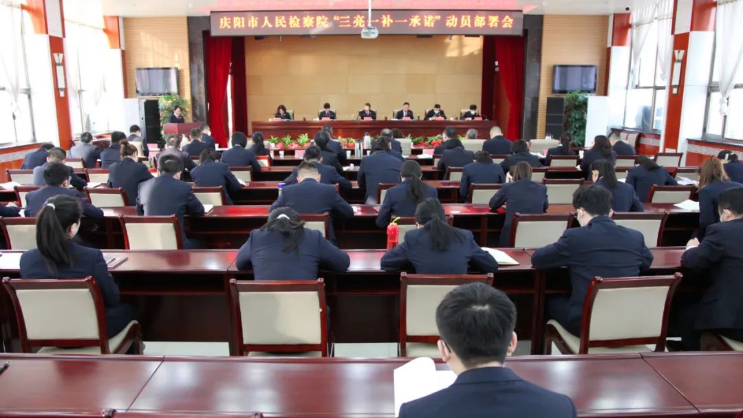 近日,庆阳市检察院召开“三亮一补一承诺”(亮目标、亮创新、亮抓手,补短板,作承诺)动员部署会议,认真学习贯彻党的二十大精神,及时传达学习甘肃省第十四届纪律检查委员会第二次全体会议精神,研究部署落实意见。该院党组书记、检察长周永祥要求,要认真贯彻落实省院党组和市委新部署新要求,聚焦“巩固提升 创新发展”奋斗主题,亮目标、亮创新、亮抓手,补短板,作承诺,尽全力稳固和保持好当前良好发展态势,强化目标意识、流程管控意识、一体化办案意识、责任意识,接续奋斗,实干笃行,再进位、再提升、再创优,更深更实走好全省检察机关第一方阵,走好新时代检察工作现代化之路。