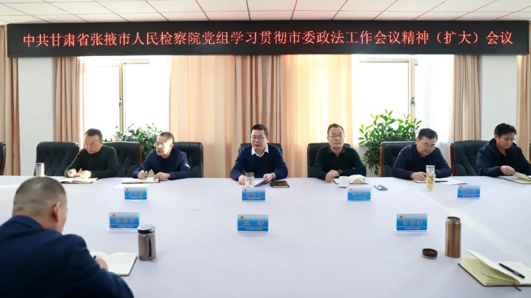 近日,张掖市检察院党组召开扩大会议,传达学习相关会议精神,研究部署贯彻落实意见。会议要求,要始终坚持党的绝对领导,把“从政治上看”落实到检察履职全过程、各环节。要坚决扛牢以检察工作现代化融入和助力政法工作现代化、服务中国式现代化的职责使命,深化创新能动履职,更加有力维护安全稳定、服务经济发展、保障民生民利、助推法治建设、助力反腐斗争,在张掖经济社会高质量发展中彰显检察担当作为。要坚定不移落实全面从严管党治检新要求,认真组织开展“铸忠诚警魂”活动,努力打造一支绝对忠诚、绝对纯洁、绝对可靠的现代化检察铁军。