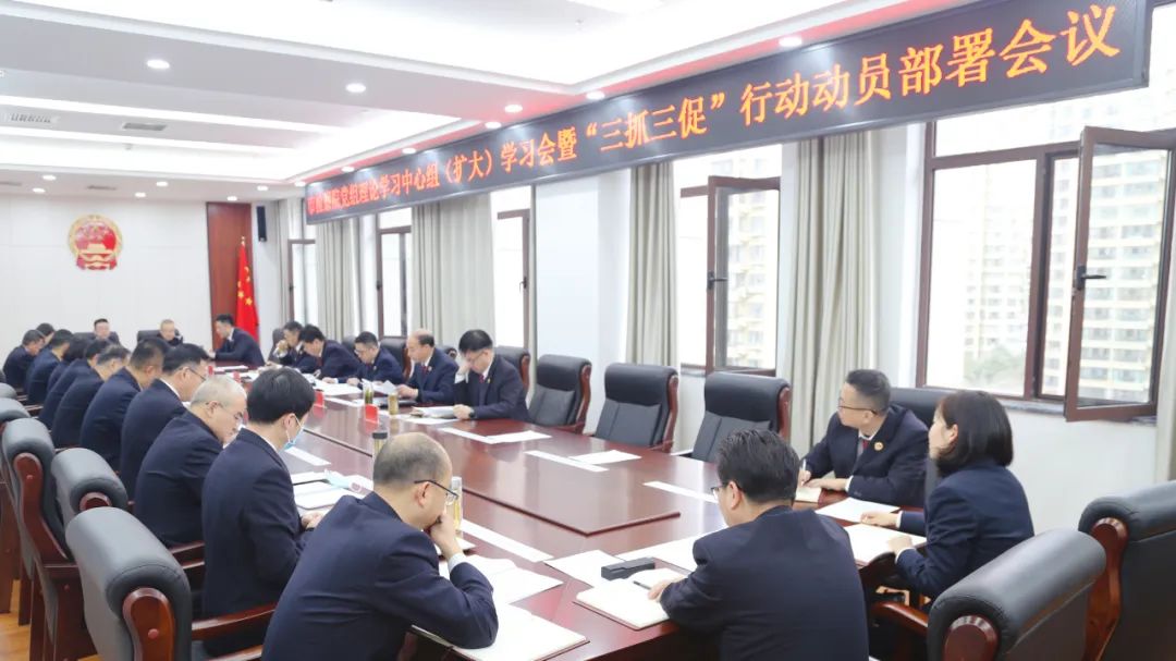 2月17日,陇南市检察院党组书记、检察长周元主持召开党组理论学习中心组(扩大)学习会暨“三抓三促”行动动员部署会议。会议要求,要提高站位,充分认识开展“三抓三促”行动的重要性紧迫性,坚持问题导向,对标对表找差距,立足本职提能力,聚焦问题转作风,树正导向激活力,高质量高标准推进活动深入开展;要成立领导小组,结合实际制定方案,形成上下联动、整体推进、齐心协力抓落实的工作格局;要严密组织,创新载体,强化督察,严肃纪律,实现规定动作不走样,自选动作有特色,确保各项任务落到实处。