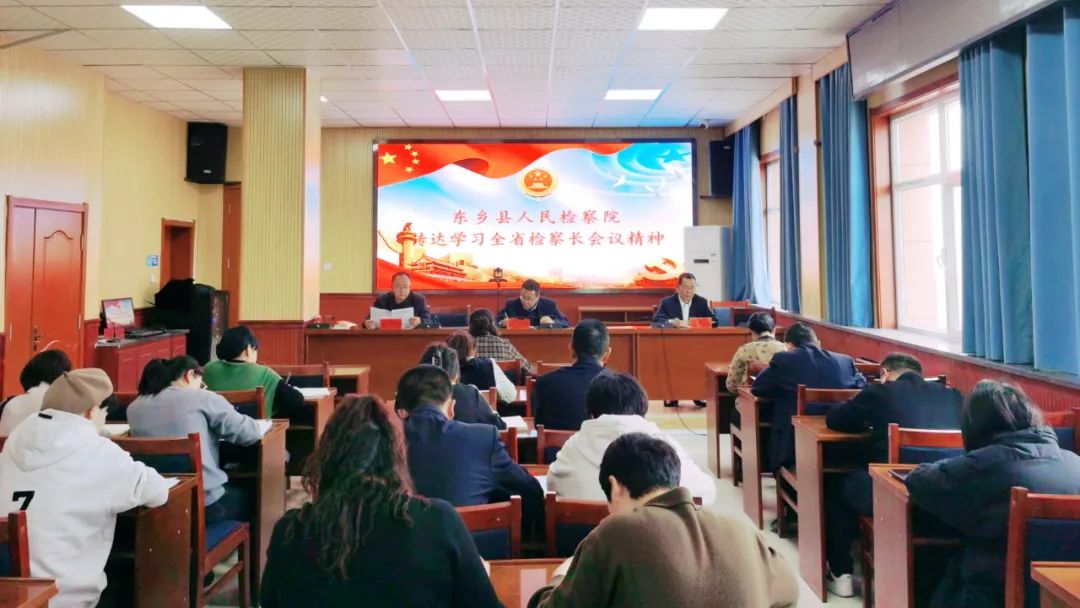 2月28日,东乡县检察院党组书记、检察长马玉祥主持召开全院干警会议,传达学习全省检察长会议精神。要把深入学习贯彻全省检察长会议精神同党的二十大精神、东乡检察实际结合起来,坚持以党的政治建设为统领,毫不动摇坚持党对检察工作的绝对领导,立足检察职能职责,聚焦维护政治安全、保持社会稳定、护航经济发展、服务人民群众、从严管党治检等重点工作,树牢系统思维,发扬斗争精神,分析新形势、解决新问题,奋力实现各项检察工作创新突破、跨越发展。