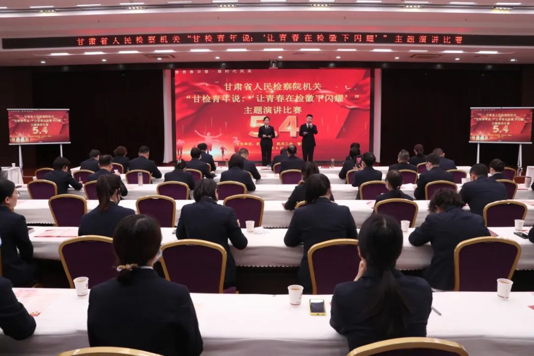为弘扬五四精神,展现新时代省检察院机关青年干警朝气蓬勃、奋发进取的青春风采,激发主动担当时代使命、积极投身检察现代化建设的工作热情,4月21日,在第73个“五四”青年节、第26个世界阅读日到来之际,省检察院机关举办“甘检青年说:让青春在检徽下闪耀”主题演讲比赛,此举是学习贯彻习近平新时代中国特色社会主义思想主题教育、“三抓三促”行动、“铸忠诚警魂”活动以及争创全国文明单位活动的具体举措之一。机关6个年轻干部学习小组分别选派干警参加比赛,该院二级高级检察官、特级检察官助理、各部门负责人及干警在现场观看比赛。