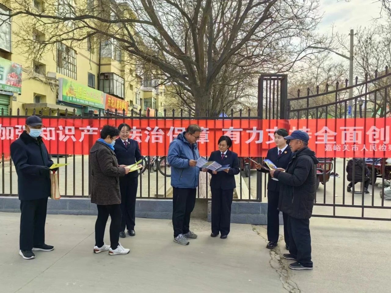 4月18日,嘉峪关市检察院开展“知识产权进企业普法宣讲”活动,检察干警向企业家代表介绍了检察机关知识产权保护工作概况,并对《专利法》《商标法》《反不正当竞争法》等法律知识进行重点解读,并深入居民广场开展知识产权宣传活动,向过往群众普及知识产权相关法律知识,介绍检察机关在知识产权保护方面的职能和作用,耐心解答群众关心的法律问题,提升群众知识产权保护意识和纠纷应对能力。