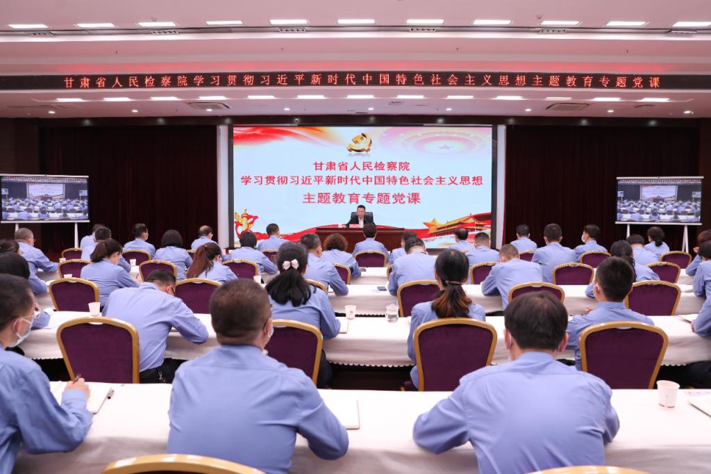 省委主题教育第一巡回指导组到会指导。省检察院机关全体检察干警及省纪委监委派驻省检察院纪检监察组全体人员在主会场聆听党课,兰铁、林区、矿区分院及所辖基层检察院全体干警以视频方式接受辅导。