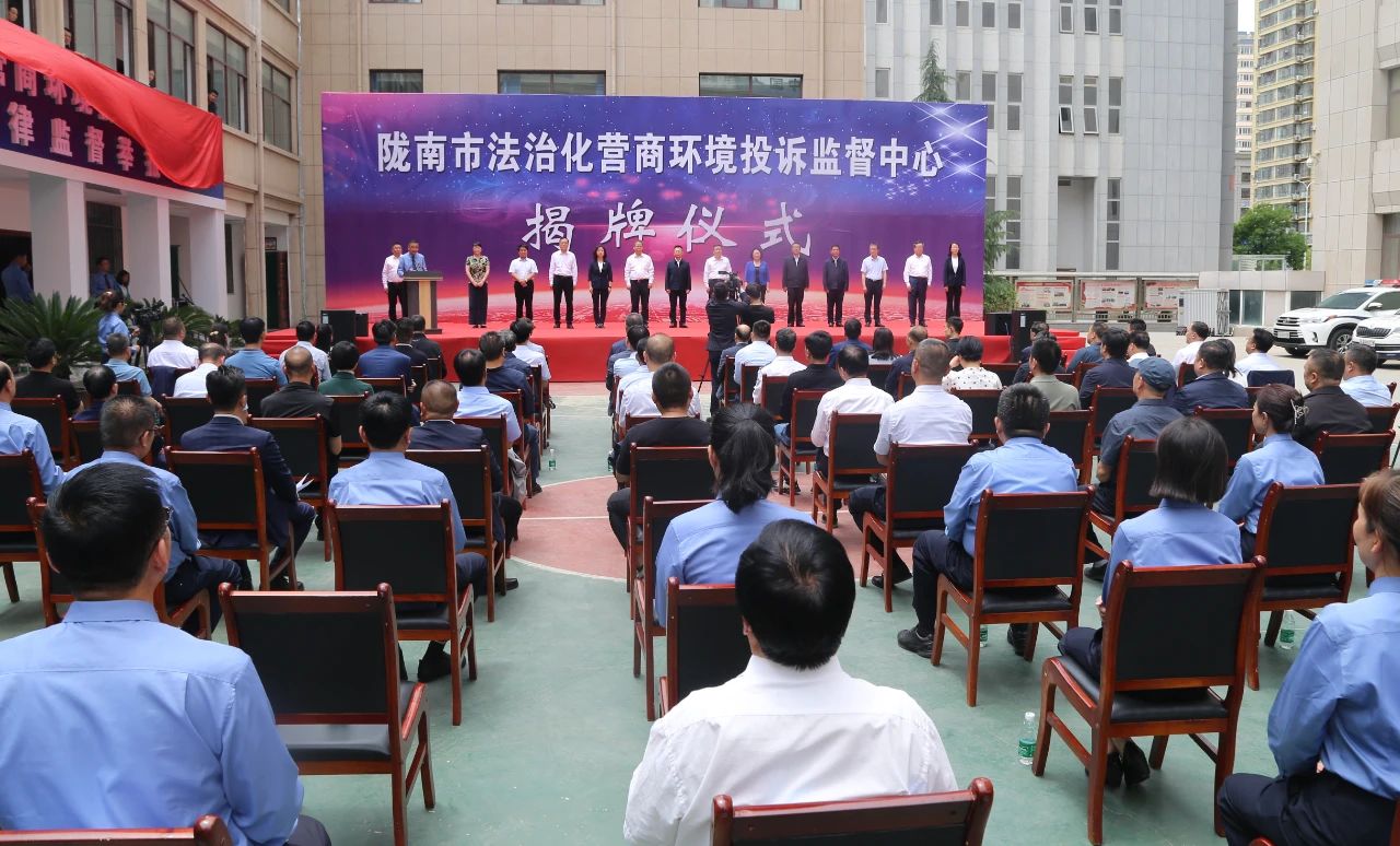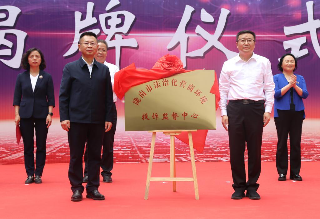 5月26日,陇南市法治化营商环境投诉监督中心在陇南市检察院成立,省检察院党组书记、检察长沈涧,陇南市委副书记、市长刘永革揭牌。