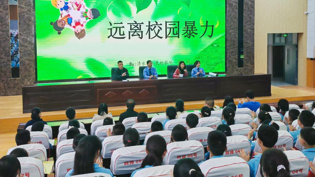 清水县检察院举办检察开放日活动,邀请省人大代表、人民监督员,教育局、市场监督管理局、民政局、卫健局、医院等相关部门代表观看专题视频,并召开座谈会,凝聚各部门合力,共同营造未成年人健康成长的良好社会氛围。该院检察官还走进县八中,为全体师生开展法治讲座。