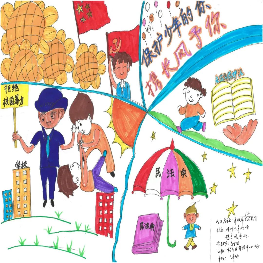 今天,我们看到孩子们用手中的画笔,记录着颗颗“法治种子”开花、结果的美好历程。