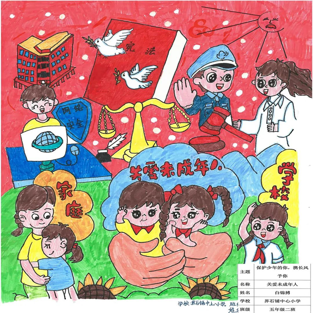 关爱未成年人,呵护祖国花朵。六大保护为未成年人撑起保护伞。作为未成年,要做到知法学法守法,成长的路上,有家庭、学校、社会、网络、政府护航,定会健康快乐地成长。