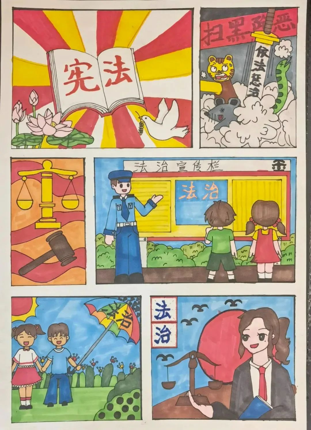 今天,我们看到孩子们用手中的画笔,记录着颗颗“法治种子”开花、结果的美好历程。
