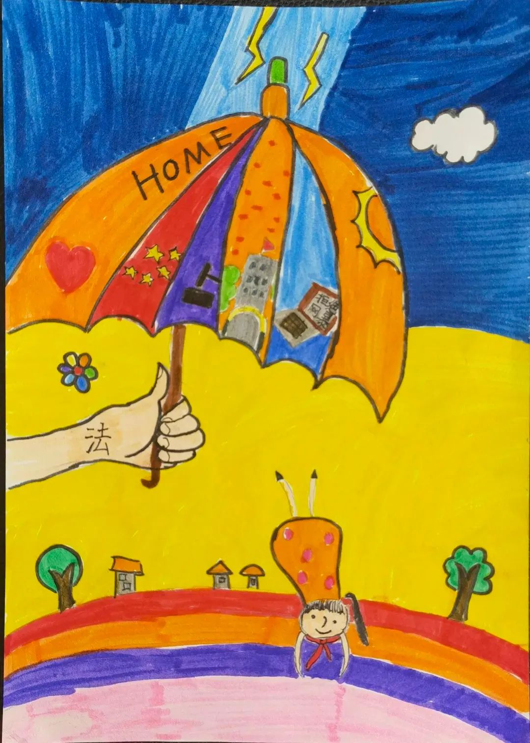 今天,我们看到孩子们用手中的画笔,记录着颗颗“法治种子”开花、结果的美好历程。