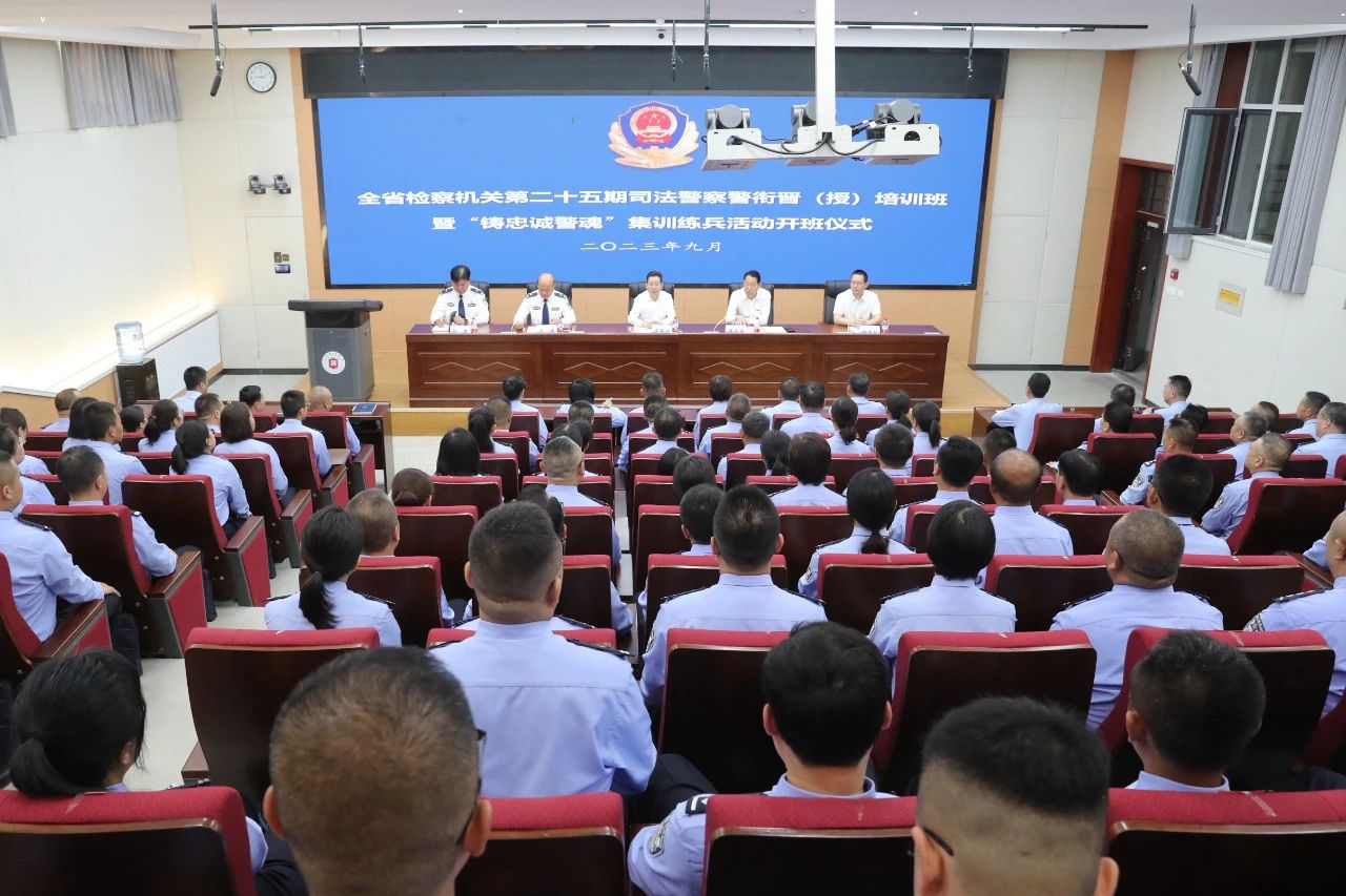 为深入学习贯彻习近平新时代中国特色社会主义思想,持续推进“三抓三促”行动、主动创稳行动和“铸忠诚警魂”活动走深走实,着力建设一支高素质专业化司法警察队伍,服务全省检察工作现代化,9月4日,全省检察机关第二十五期司法警察警衔晋(授)培训班暨“铸忠诚警魂”集训练兵活动在甘肃政法大学开班。省检察院党组成员、政治部主任李建功出席开班式并讲话,甘肃政法大学党委委员、副校长魏克强教授致辞,甘肃政法大学司法警察学院院长郑永红教授宣读培训考核纪律,省检察院政治部警务处处长王伟主持开班式。全省市州院法警支队长和拟晋(授)警衔以及补训的司法警察参加。