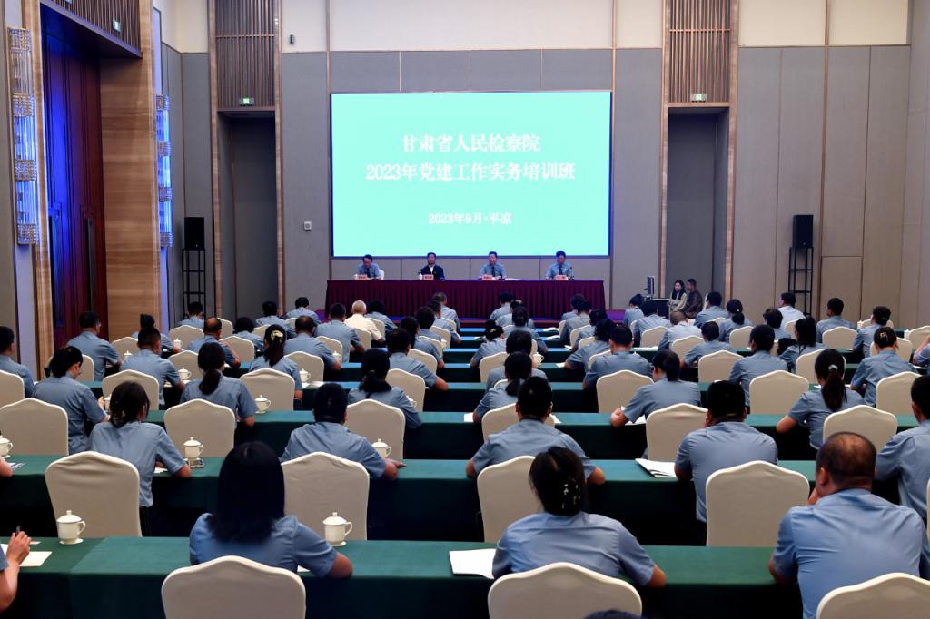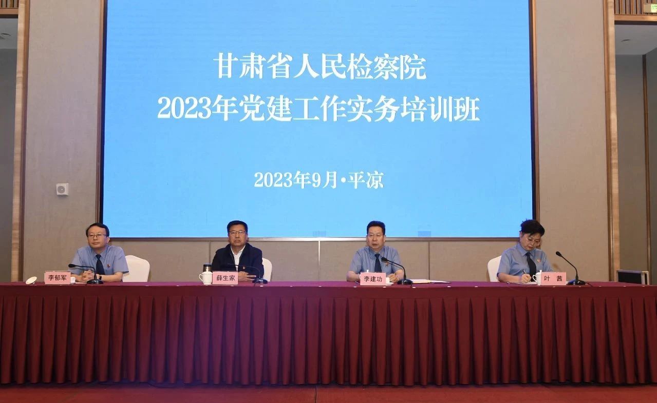 在平凉市举办2023年党建工作实务培训班。省委直属机关工委副书记薛生家出席开班式,省检察院党组成员、政治部主任、机关党委书记李建功出席并讲话,平凉市检察院党组书记、检察长李郁军致辞,省检察院机关党委负责人主持开班仪式,省检察院机关及三个分院党支部书记和党务骨干共90余人参加培训。