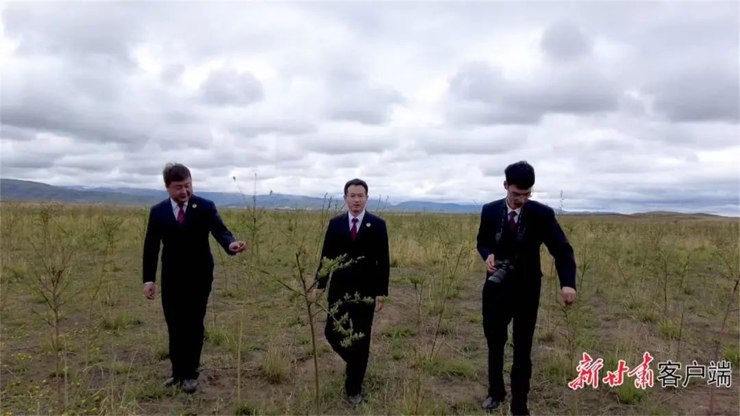 图片玛曲县检察院检察干警回访草原沙化治理情况。(玛曲县检察院供图)