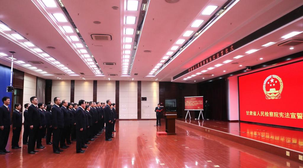 省检察院党组要求,全体检察干警要不断强化宪法意识、弘扬宪法精神、遵守宪法法律、加强宪法实施、维护宪法权威,把誓言时刻铭记于心。要认真学习宪法,衷心拥护宪法,牢靠信仰宪法,切实增强宪法意识和宪法自觉,真正让宪法浸润灵魂、融入血脉。要牢固树立依宪履职、依宪用权的理念,坚决履行宪法法律赋予的神圣职责,严格按照宪法和法律规定的权限和程序行使权力。要确保检察权始终沿着法治轨道运行,努力让人民群众在每一个司法案件中感受到公平正义,坚定不移做宪法的忠实崇尚者、严格遵守者、自觉运用者、坚定捍卫者,为建设幸福美好新甘肃,不断开创富民兴陇新局面作出新的更大贡献。