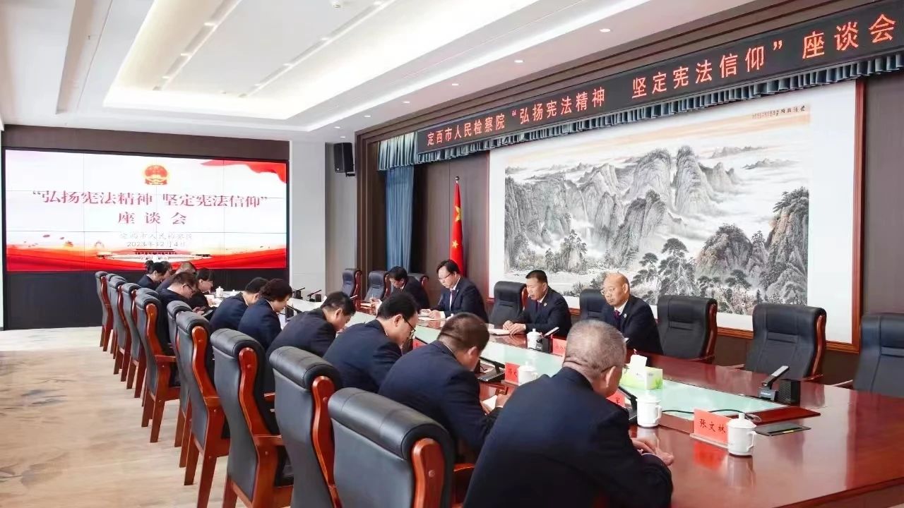 定西市检察院举行宪法宣誓仪式,并召开“弘扬宪法精神 坚定宪法信仰”座谈会,7名干警结合主题和工作实际开展互动交流。大家纷纷表示要切实增强学习贯彻宪法的责任感、紧迫感和使命感,扎实有效开展本职工作。